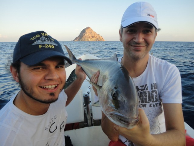 Arkadaşlar küçük balık avından sıkılıp büyük balık avcılığına bir başlangıç yapmak için rezervasyon yaptırarak turlarımıza katıldılar. Tur saati geldiğinde saat 16.00 Adrasan sahilinde buluşup denize açıldık. Önce yemlik balık için Palamut avı yaptık. Koy içinde üç adet yemlik avladıktan sonra Sulu Adaya doğru yol almaya başladık.